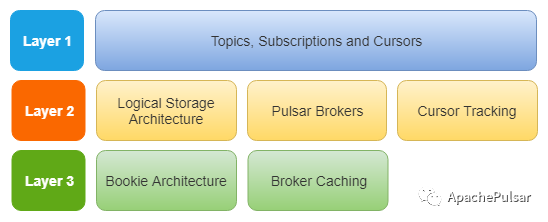 Apache Pulsar在上层具有高级别的Topic(主题)和Subscription(订阅)的概念,在底层数据存储在二进制文件中,这些数据交叉分布在多个服务器上的多个Topic。在其中包含很多的细节部分。我个人认为把它分成不同的抽象层更容易理解Apache Pulsar的架构设计,所以这就是我在这篇文章中要做的事情。