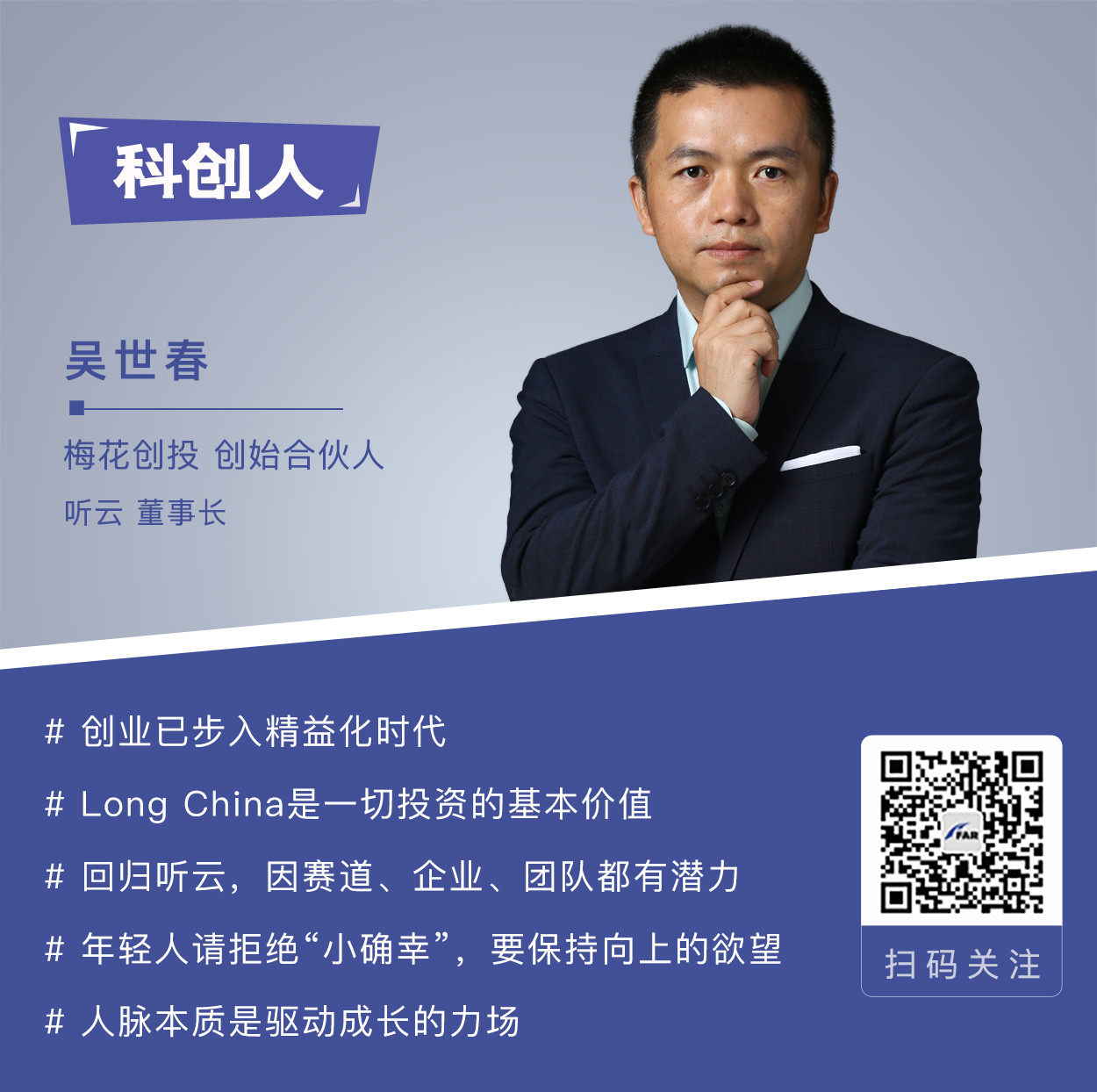 吴世春:“今年是最困难的一年”,连着几年年初都能听到这句话(笑)。我的看法一如既往,整体经济依旧处于上升通道之中,但投资者和创业者都要有独立思考、发掘差异化价值的能力,不能跟着别人的节奏跳舞。梅花创投每年都能发现一些极具投资价值的垂直领域,都不是所谓的大赛道、大风口。太多资金涌入某个领域意味着狂热与拥挤,这必然会引起资源错配和价值浪费,比如当年的千团大战、共享大战,大量资金涌入后只剩下一地鸡毛。