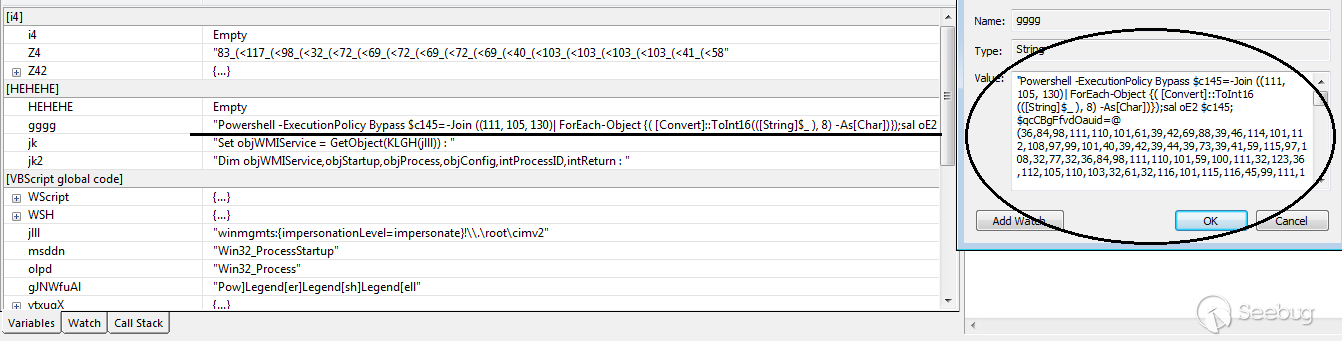 实际上这次代码非常模糊,其中包含了很多字符串操作子例程,但是,一旦结果字符串被重构,上面提到的powershell引用就变得更加清晰。