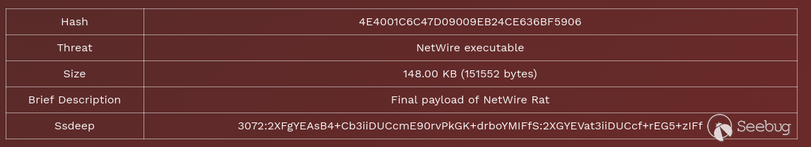description = "Yara Rule for Netwire campaign final payload Jun2020"