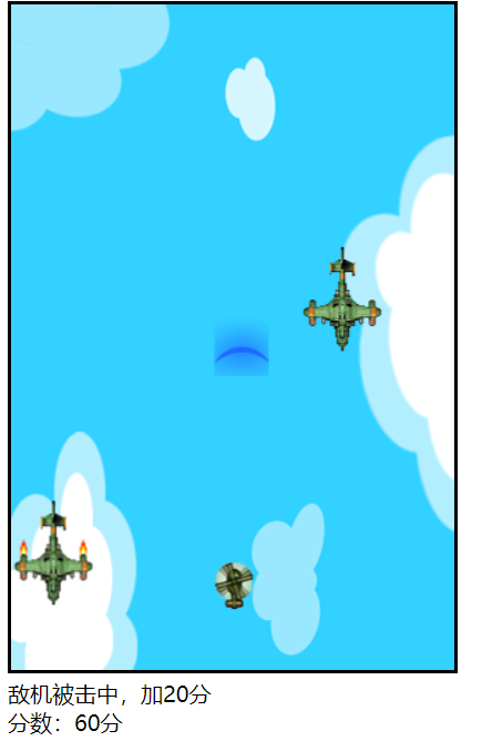 游戏介绍:经典小游戏,飞机从上向下出现,玩家操控自己的飞机发射激光,破坏敌机,自己的飞机被破坏游戏结束。