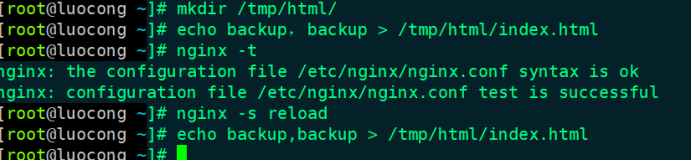 19、从上的默认页也在 /tmp/html/index.html ,将默认页改为 backup,backup