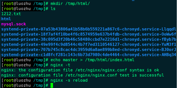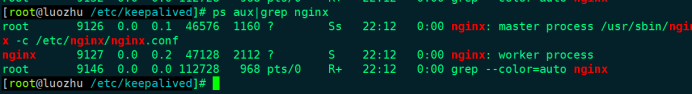 测试1: 关闭 主上 nginx,会重新启动,因为 keepalived