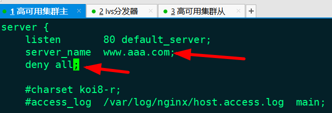 此时访问的是主的默认虚拟服务器,在 nginx配置文件 vim /etc/nginx/conf.d/default.conf中定义(初始为:/usr/share/nginx/html;)同时注意修改server_name localhost;并删除deny all;限制,并重启nginx -t ; nginx -s reload