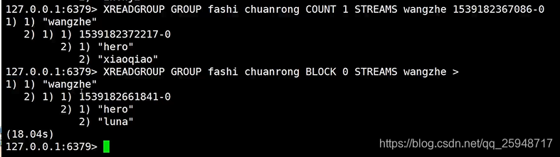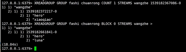 Block 0 表示阻塞,也就是在客户端新插入消息后,这里才会有如下显示: