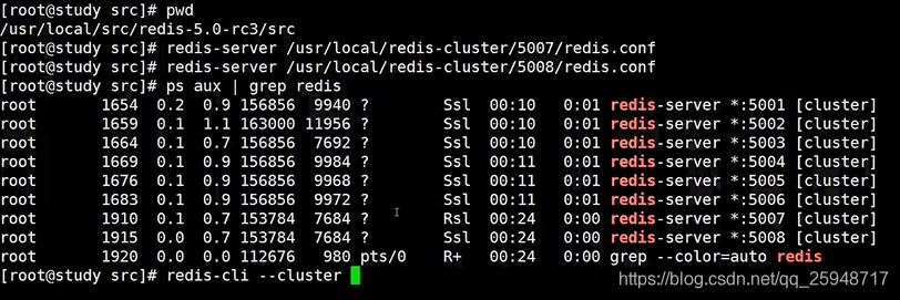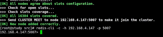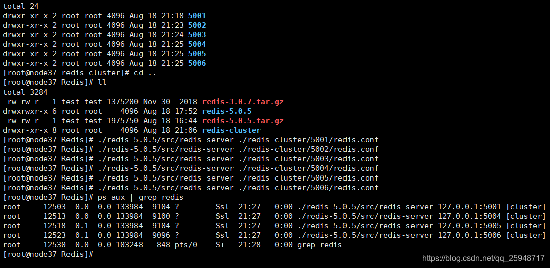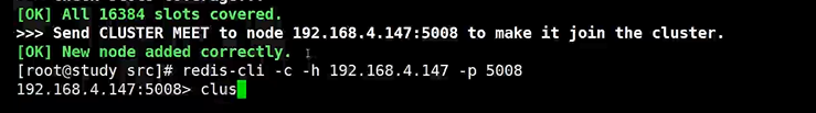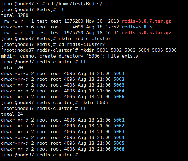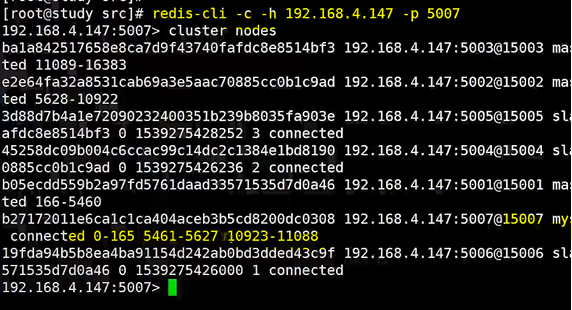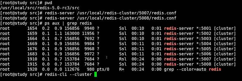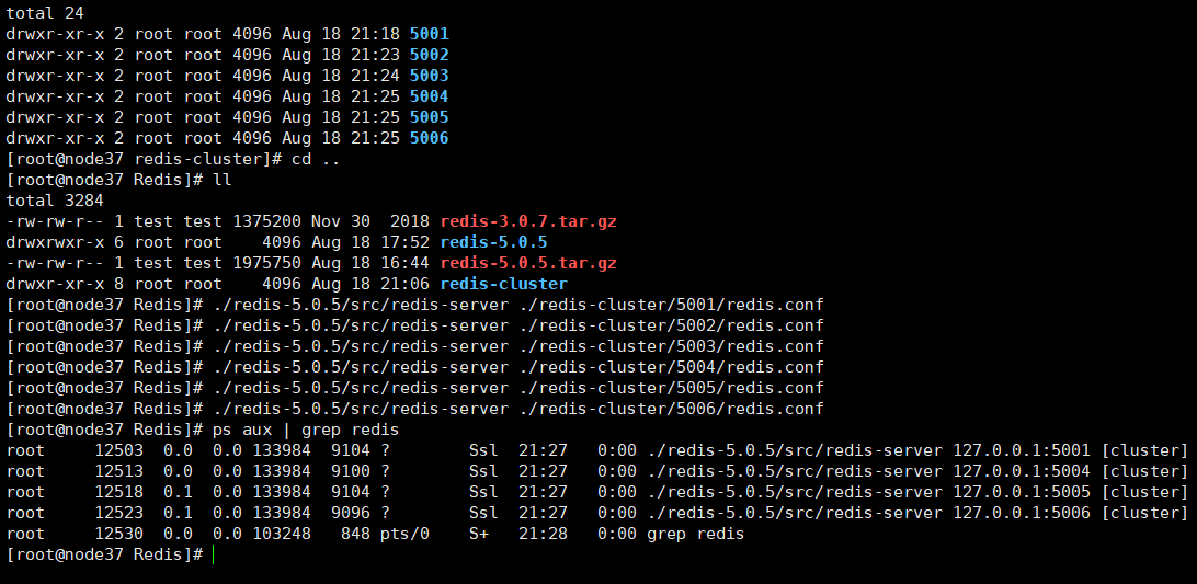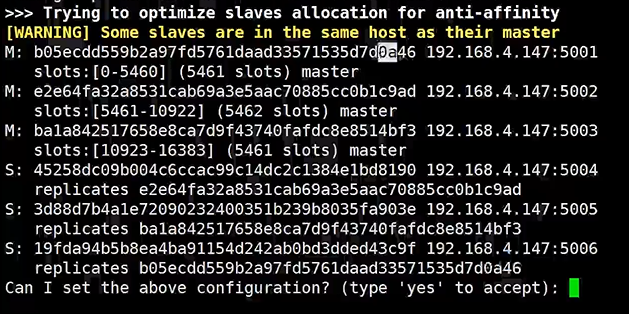 redis-cli --cluster create node37:5001 node37:5002 node37:5003 node37:5004 node37:5005 node37:5006 --cluster-replicas 1
