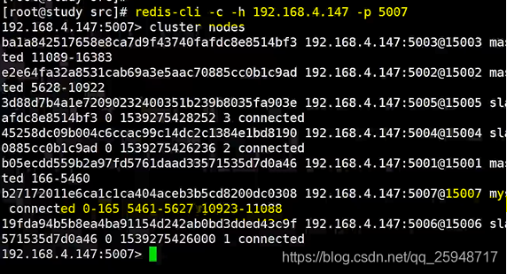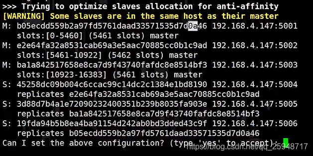 最后的 : --cluster-replicas 1 表示主/从节点比例是1:1.即都是3台。