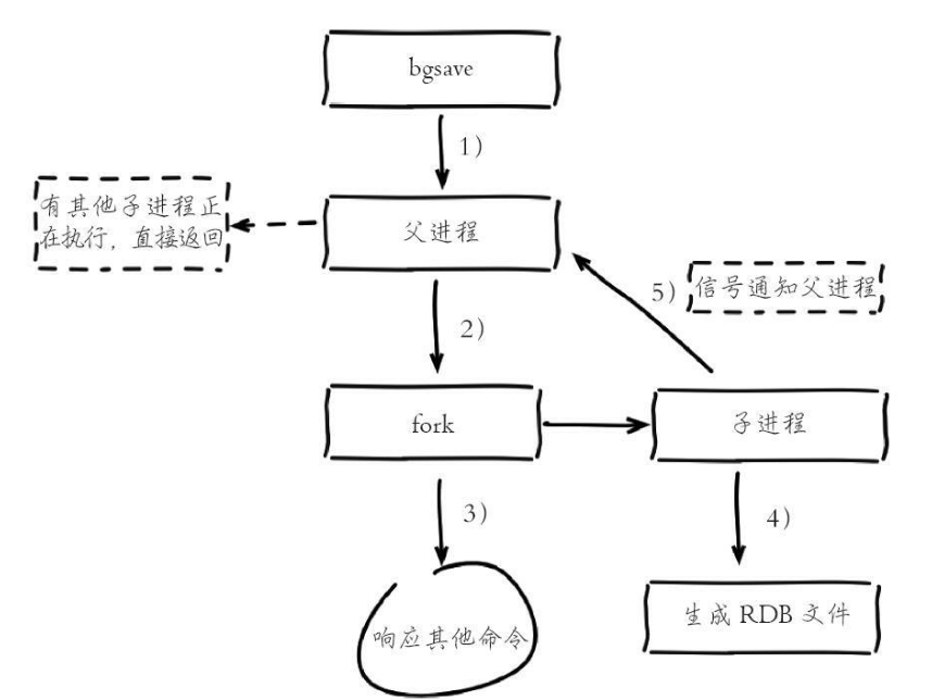 bgsave 是主流的触发 RDB 持久化方式,根据下图了解它的运作流程