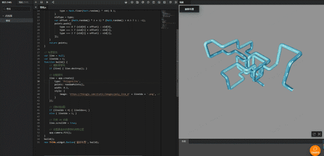 将这个脚本放入到thingjs在线开发平台中,点击运行即可形成如图的管线案例。