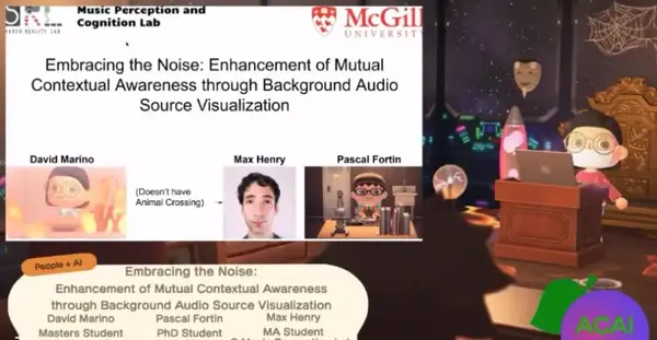 所分享研究的参与者,都会在 PPT 首页展示其动森形象。第二个上场的是麦吉尔大学的研究者。