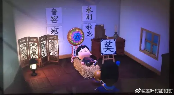 有玩家在岛上搭建了葬礼场地:“本人已火化,有事烧纸。”