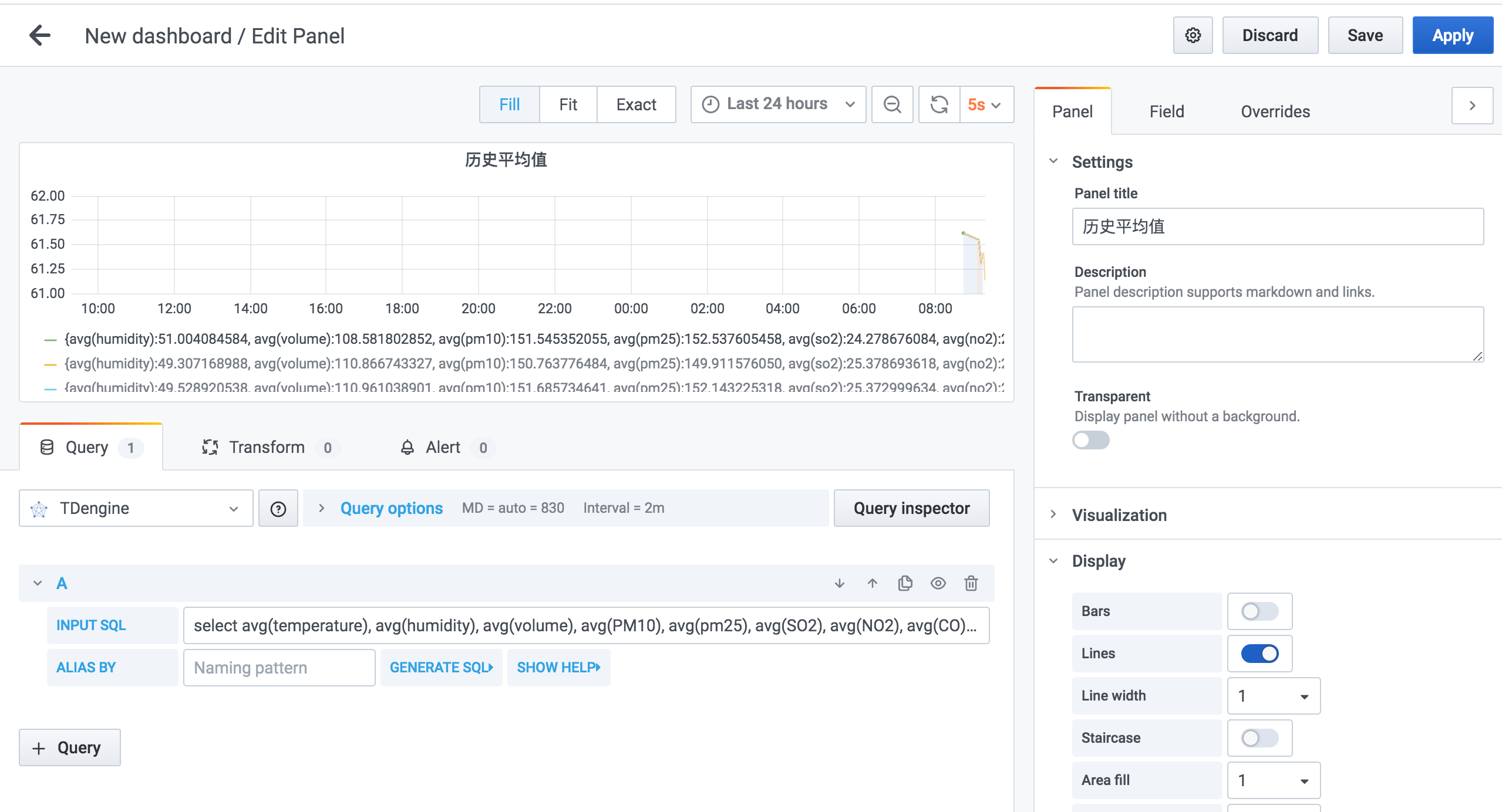 使用 Grafana 的可视化查询构建工具,查询出所有设备的平均值。