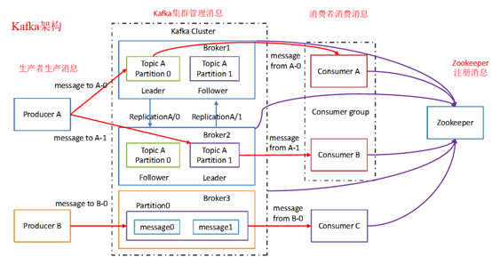 kafka对消息保存时根据Topic进行归类,发送消息者成为Producer,消息接受者成为Consumer,此外kafka集群有多个kafka实例组成,每个实例(server)成为broker。无论是kafka集群,还是producer和consumer都依赖于zookeeper来保证系统可用性集群保存一些meta信息