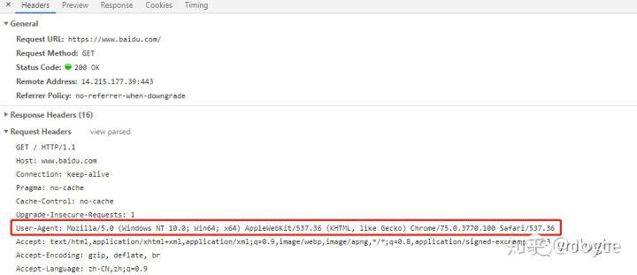 User-Agent会告诉网站服务器,访问者是通过什么工具来请求的,里面包含了浏览器和系统相关版本信息。