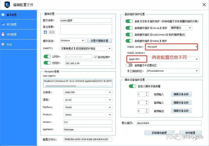 所以这里我们可以得出一个结论:如果我们把User-Agent标识成了Chrome 和 Firefox 浏览器,那么最好 windows 系统 WebGL vendor 设置为Google Inc. 比较合理。