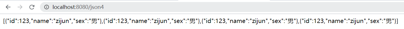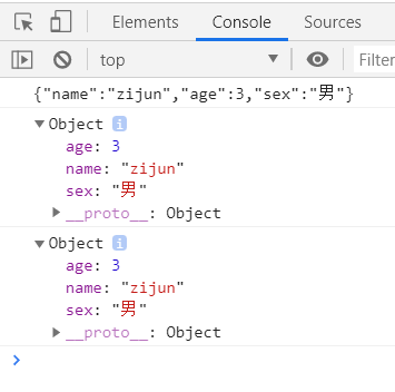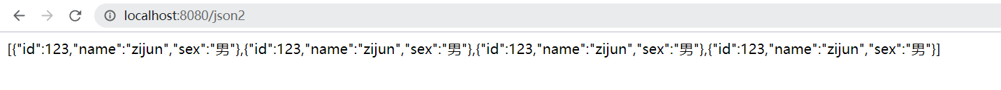 可以看到user对象被变成了一个字符串,而且是以键值对对应的形式显示的,这个情况主要由js自带的JSON方法实现;而同样的JSON字符串也可以被转换为对象,这样在前后端分离的时候,只需要定义好接口,前端程序员通过后端程序员传过来的JSON字符串就可以实现数据的动态导入。