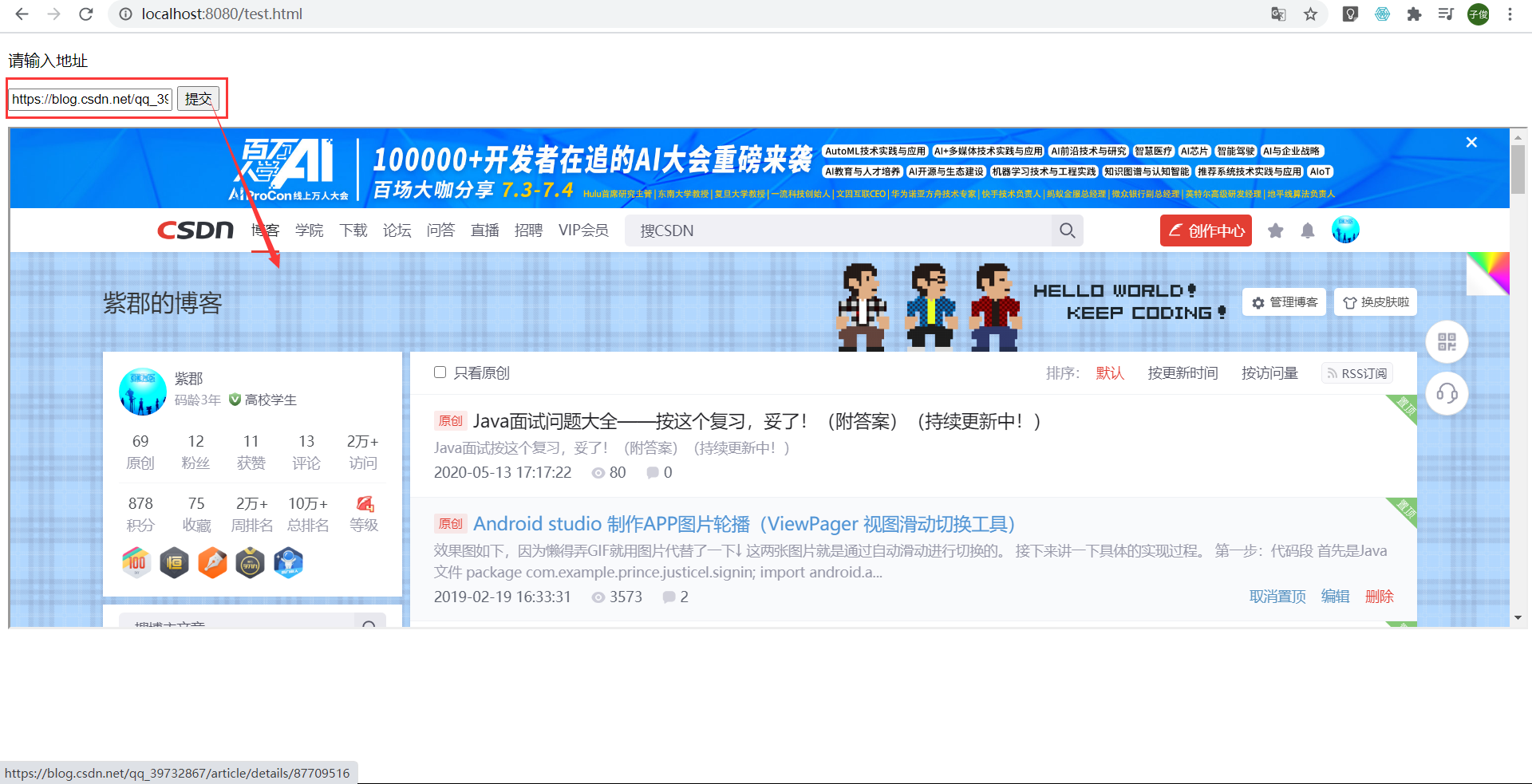 Java代码的跳转非常简单就不讲了,主要讲一下拦截器,当我们通过getRequestURI()判断位置后,根据不同的位置做出不同的判断,同时获取登录时的session域中的值来判断是否已经登录,最后进行true放行或者false不放行的判断。