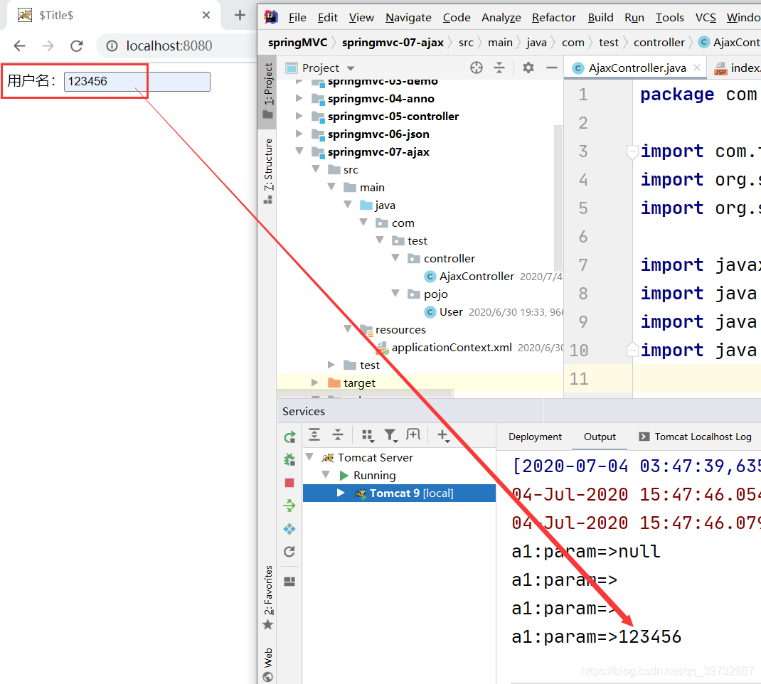 使用@ResponseBody就不会跳转到某个JSP页面,而是直接返回类型,我们的返回类型是String,所以会直接返回字符串。