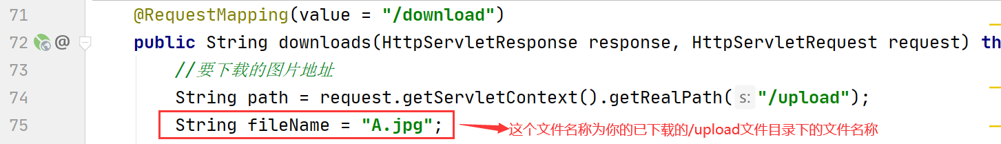 然后是Java代码这里的代码是固定的,使用时只需要改变下载的文件名称即可,而上传的代码可以直接使用: