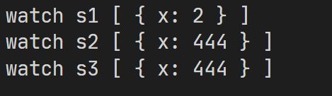 上述代码的输出如下, s1的watch生效了, 而s3的修改触发了两次watch