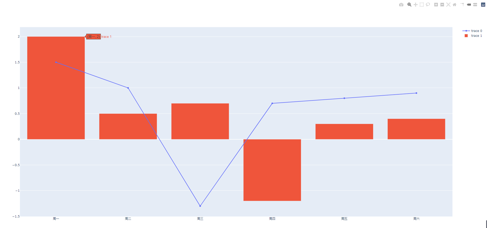 bar = go.Bar(x=["周一","周二","周三","周四","周五","周六","周日"],