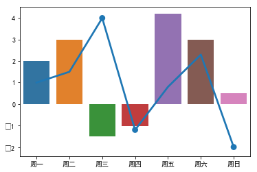 sns.barplot(["周一","周二","周三","周四","周五","周六","周日"],