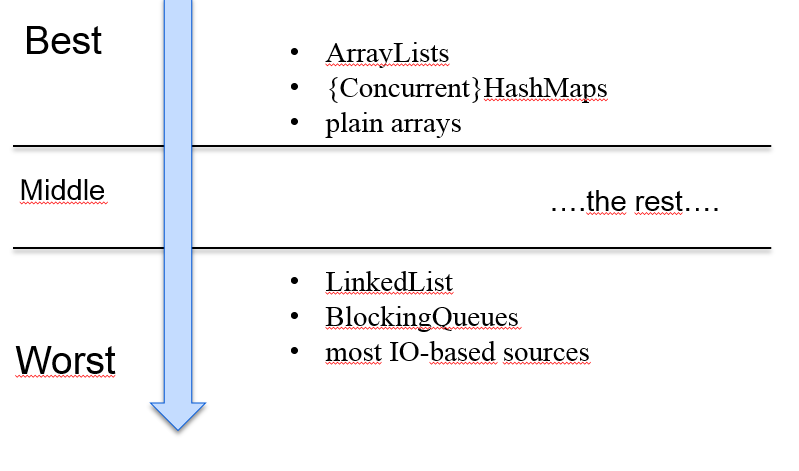 - 数据源易拆分:从处理性能的角度,parallel()更适合处理ArrayList,而不是LinkedList。因为ArrayList从数据结构上讲是基于数组的,可以根据索引很容易的拆分为多个。