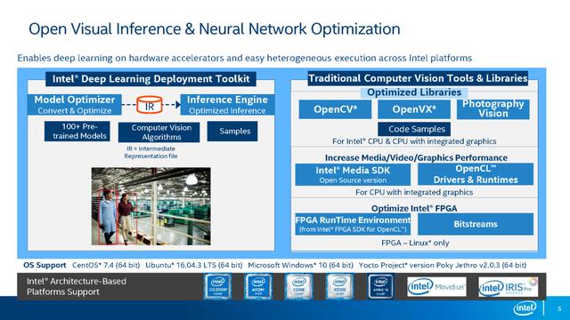 OWT系统支持英特尔的VCAC-A卡,Movidus VPU以及英特尔各个产品系列。