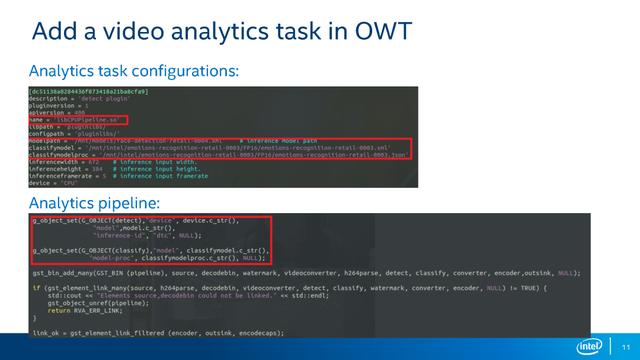 OWT视频分析系统给用户提供了方便的接口,用户可自行组合不同的GStreamer plugin来实现不同的分析任务。