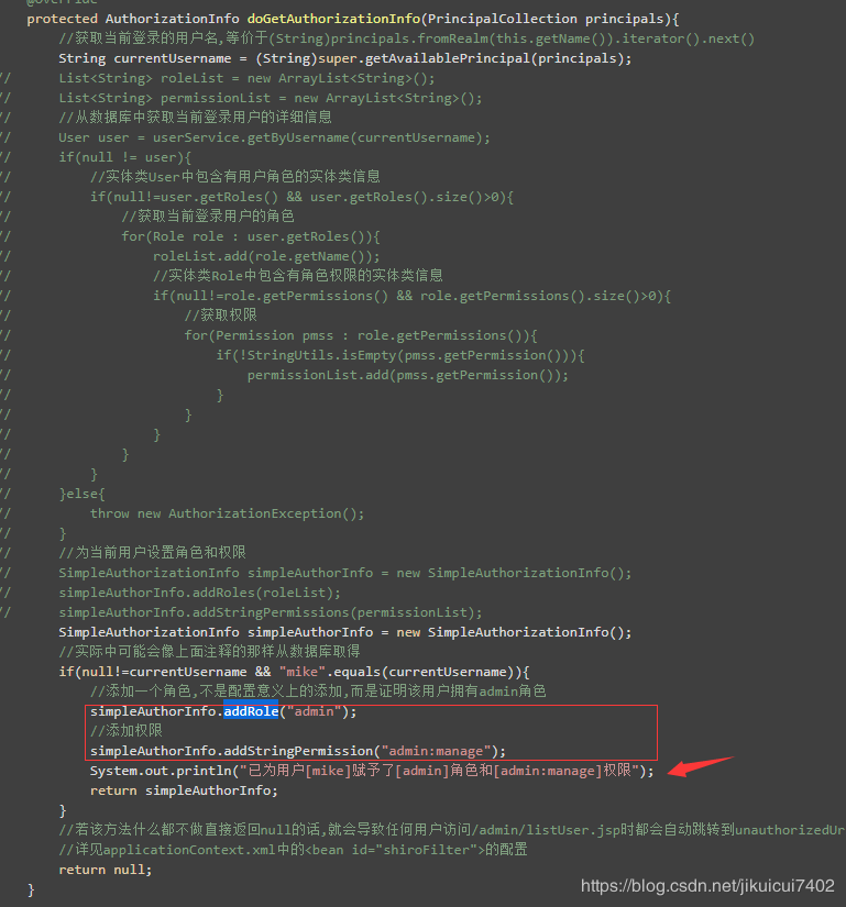 验****证成功后会进入当前realm的 doGetAuthorizationInfo方法进行授权