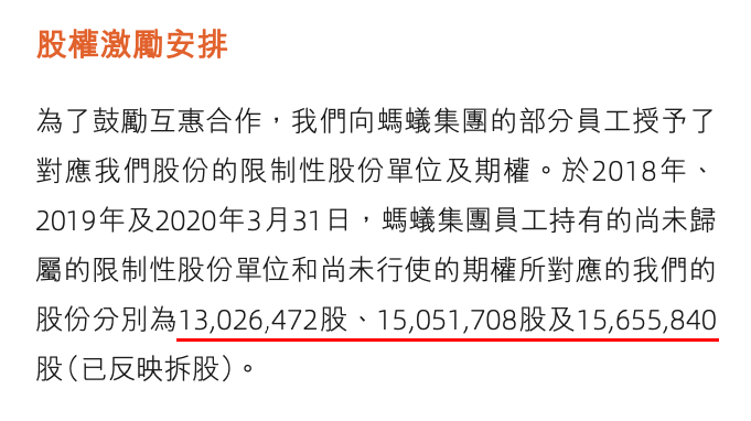 蚂蚁集团每年给员工分配多少期权?最近三年分别是1300w股、1500w股和1560w股,除以4000人,平均每人4000股。