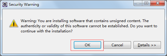 安装过程中弹出如下的警告框,不用理会,直接点击【OK】按钮继续安装