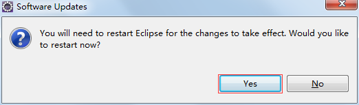 安装完成之后需要重启Eclipse,点击【Yes】按钮重启Eclipse即可。