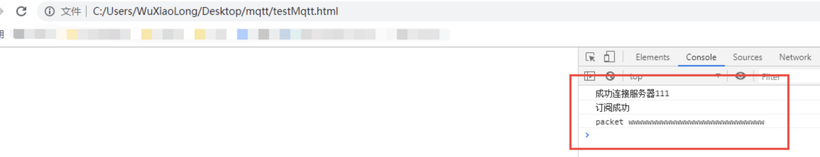 这里有两个注意点:使用ws协议必须使用emq的8083端口,必须在请求地址端口后面添加"/mqtt“, ws://192.168.1.200:8083/mqtt , wss://192.168.1.200:8084/mqtt; 第一次链接时,浏览器(这里测试的是chrom浏览器,根据浏览器的厂商或者浏览器的不同版本会有差异)提示failed: Error in connection establishment: net::ERR_CERT_AUTHORITY_INVALID,因为证书是自签的,浏览器不认,解决办法:在浏览器上请求https://192.168.1.200:8084/mqtt((如果是经过ngnix转发的使用https://www.wuxiaolong.com/mqtt)),会提示不安全,选择高级,继续访问,就解决了这个问题。操作完成后再刷新该testMqtt.html页面就链接成功了。