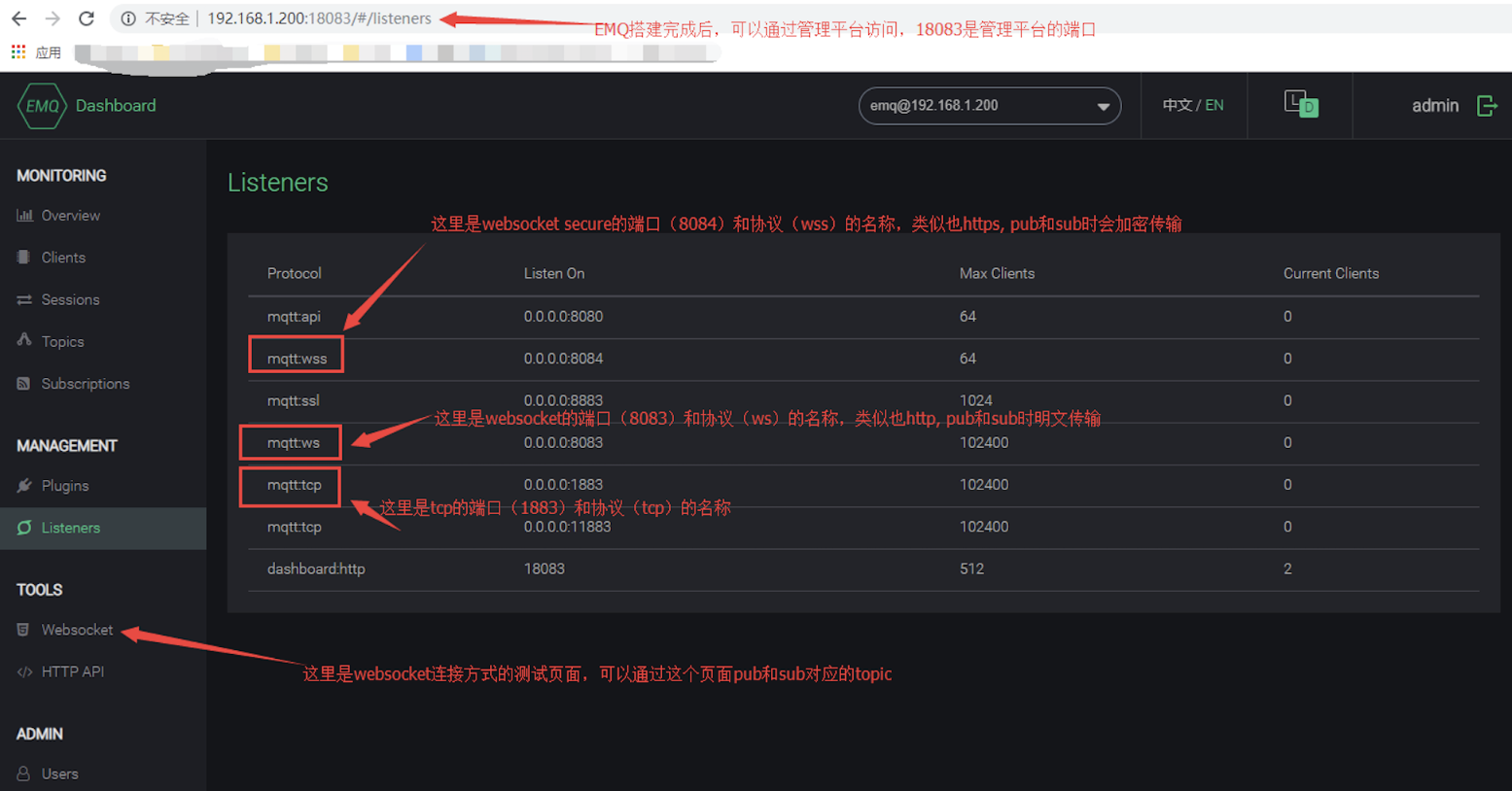//a.使用ws协议必须使用emq的8083端口,必须在请求地址端口后面添加"/mqtt"