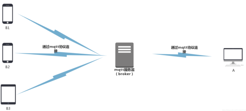 和http协议相比,mqtt协议是一种长链接,一般是发布(pub)/订阅(sub)模式,需要一个broker服务器作为服务端,多个客户端都可以连接在这个broker服务器上,而且客户端和服务端一直保持连接(心跳)不断开,所以是一种长链接。A客户端向broker的某个topic上发送(pub)一条信息,如果有其他的客户端B1-B3订阅(sub)了这个broker上的这个topic的信息,这些客户端就可以收到A客户端发送的信息。