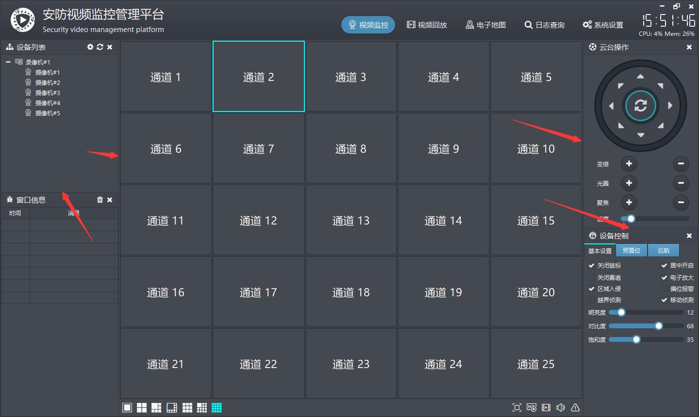 - 云台控制,上下左右移动,焦距放大缩小,相对和绝对移动。