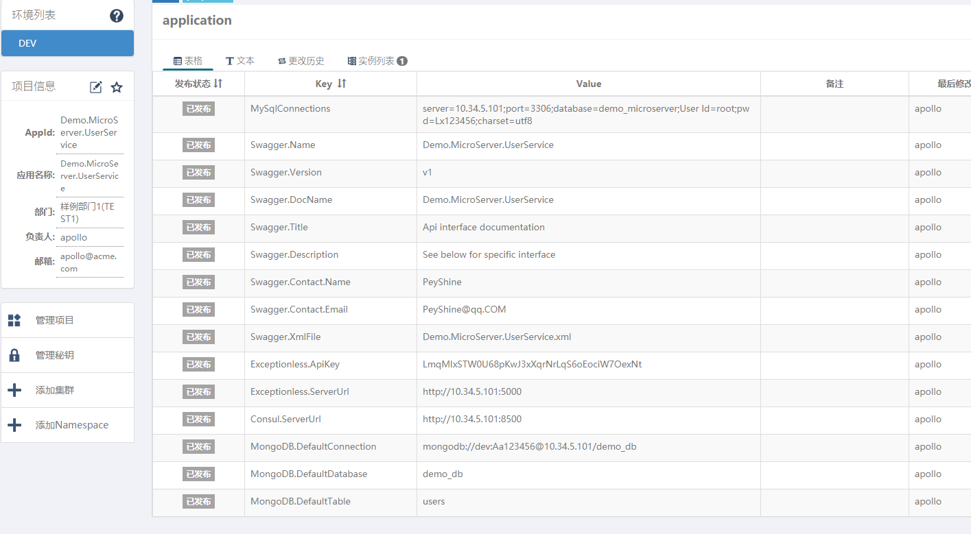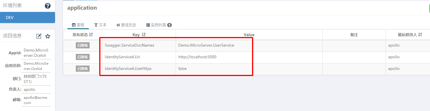 - Demo.MicroServer.UserService 层在apollo中的配置: