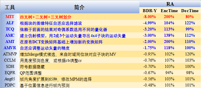 表1. VVC关键技术