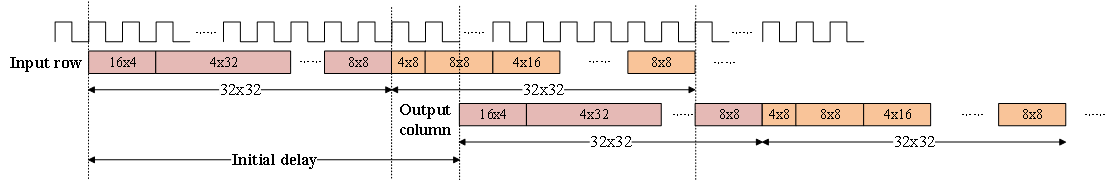 (c)The timing chronogram of proposed pipelined architecture (different colors mean that these TUs belong to different 32×32 block ranges). 图9. 混合块尺寸的流水线化
