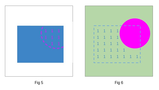 因此,我们可以将矩形的像素值设置为1,在这里它应该与圆重叠(在图5中),同时保持矩形的其余像素值不变。