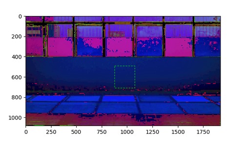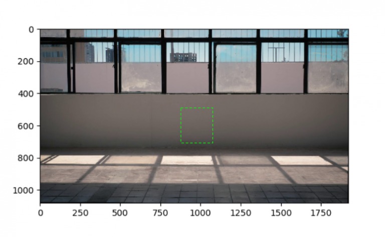 我们必须使绿色虚线框包围的墙像素具有相同的值。我们可以借助HSV(色调、饱和度、值)颜色空间来完成此操作: