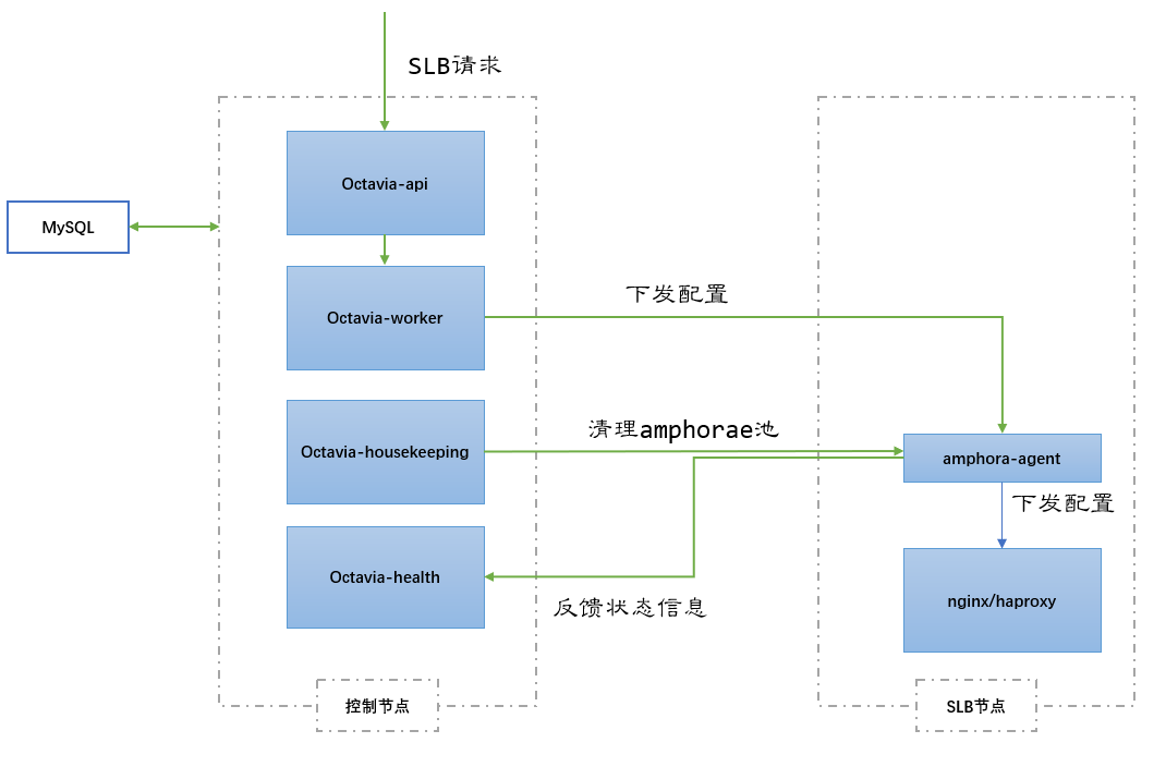 Octavia就是将用户的API请求经过逻辑处理,转换成Haproxy或者Nginx的配置参数,下发到amphora虚机中。