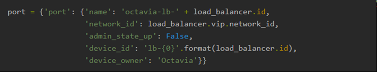 创建loadbalancer的参数中可以指定 vip 绑定的 port,如果没有指定,octavia 会自动(在 API 层)创建: