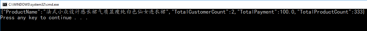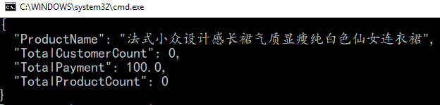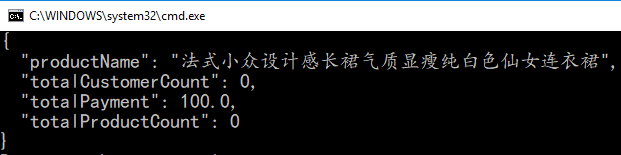 var json = "{'title':'法式小众设计感长裙气质显瘦纯白色仙女连衣裙','customercount':1000,'totalpayment':100.0,'productcount':10000}";