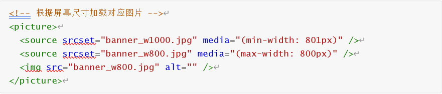 这里的图片响应式包括两个方面,一个就是大小自适应,这样能够保证图片在不同的屏幕分辨率下出现 压缩、拉伸的情况;一个就是根据不同的屏幕分辨率和设备像素比来尽可能选择高分辨率的图片,也就 是当在小屏幕上不需要高清图或大图,这样我们用小图代替,就可以减少网络带宽了。
