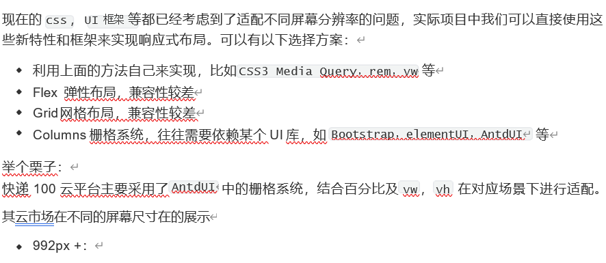 老大:“开发哥,在手机上打开咱们这网站怎么都缩小挤成一坨了?” 开发哥:“老大,咱们这网站都是照着设计师给的尺寸写死的,只有在固定尺寸的屏幕上才显示正常……” 老大:“那我要你有锤子用?没吃过猪肉,还没见过猪跑啊,我最近发现快递 100 云平台居然是响应式的,咱们不能落后;还愣着干嘛?赶紧去学学!” 说到屏幕适配,就离不开响应式布局,传统的开发方式是 PC 端开发一套,手机端开发一套,而使用响应式布局只需一套即可。 响应式设计与自适应设计的区别:响应式开发一套界面,通过检测视口分辨率,针对不同客户端 在客户端做代码处理,来展现不同的布局和内容;自适应需要开发多套界面,通过检测视口分辨 率,来判断当前访问的设备是 pc 端、平板、手机,从而请求服务层,返回不同的页面。 响应式布局实现方案