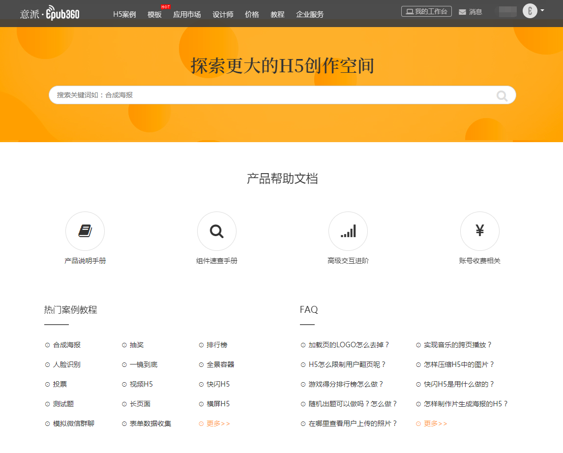 A:意派Epub360平台包含从基础入门到进阶提升的一系列详细教程,你只要在其官网的教程板块中直接搜索关键词就能找到具体内容。如果能把这些教程吃透的话,那你做出来的H5肯定很惊艳。