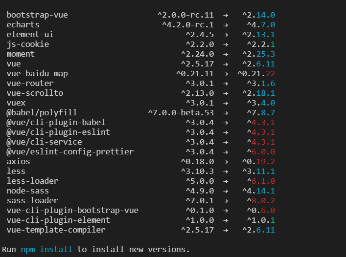 PS:如果只要更新某些个插件,只要检查版本后,手工改package.json对应的插件版本号在install