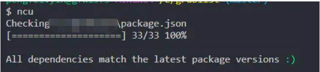 ncu -u,检查package.json文件,会发现package.json里面的依赖版本号已经变成最新版本